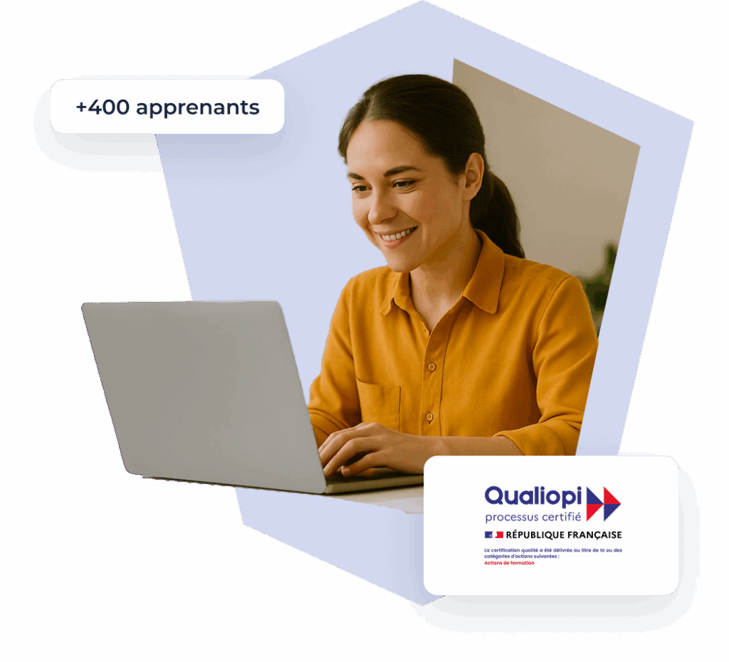 E-learning accompagné : vous avancez à votre rythme en E-Learning, avec des rendez-vous en visio pour poser vos questions et valider les acquis avec un formateur.
