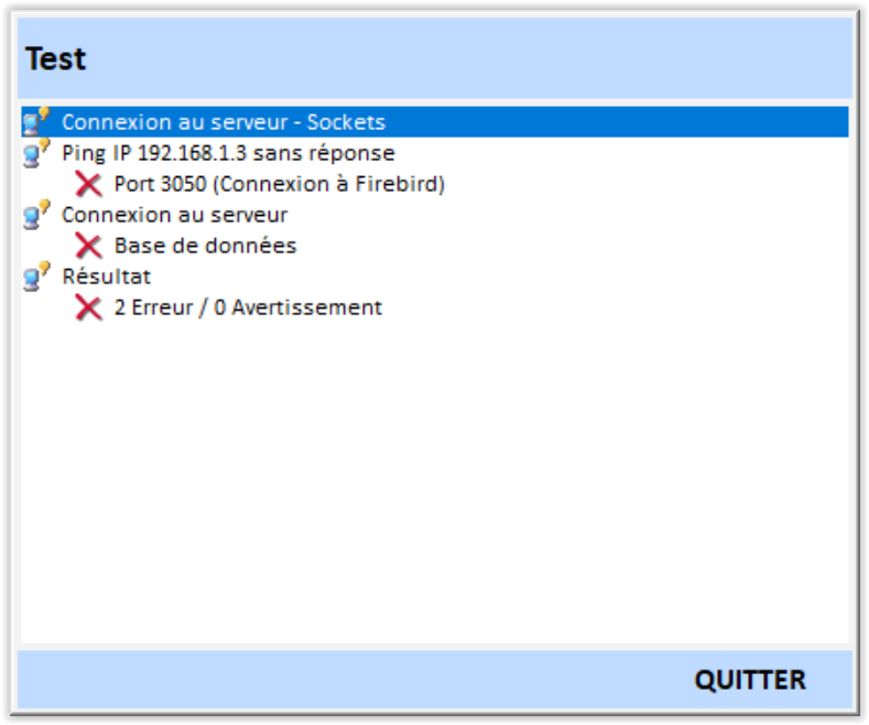 Le logiciel vous donne la liste des erreurs qu’il va falloir que votre informaticien corrige pour que le poste puisse fonctionner en réseau avec le serveur.