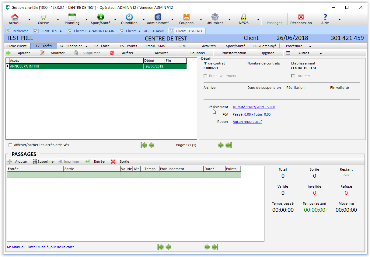- Lancez le logiciel Gestion Clientèle, saisissez votre code utilisateur et choisissez le client concerné.