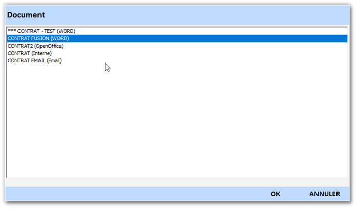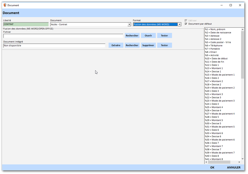 - cliquez sur « non défini » dans la zone « document pour le contrat »