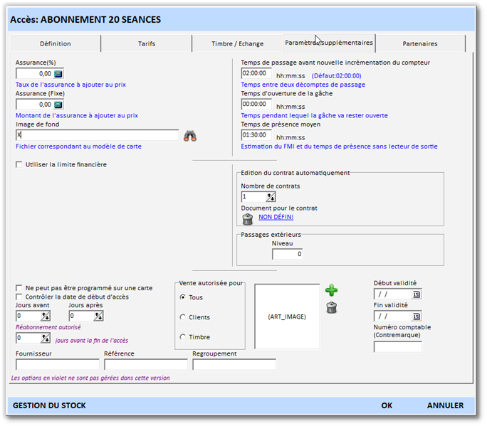 - Paramétrage des abonnements.