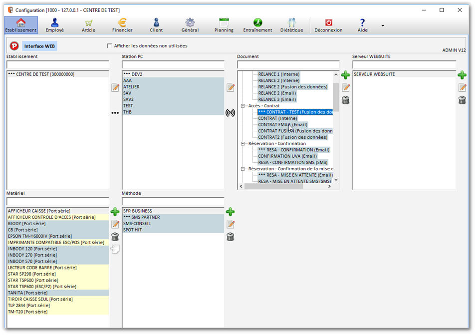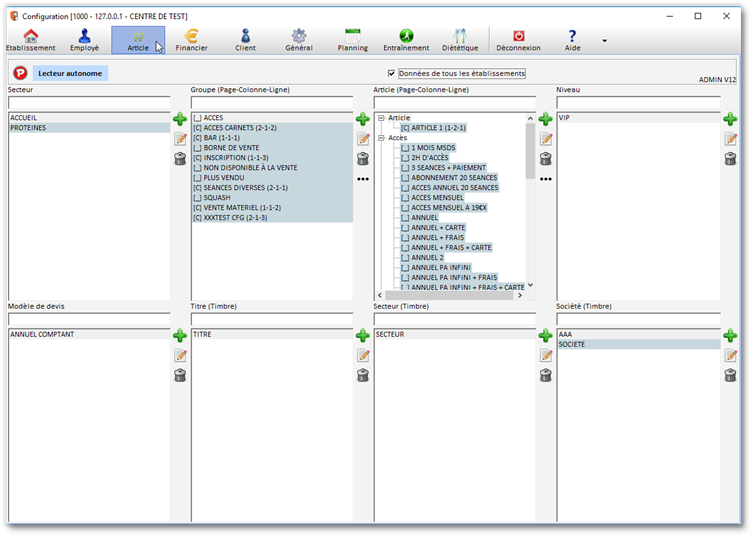 Dans CONFIGURATION cliquez sur ARTICLE