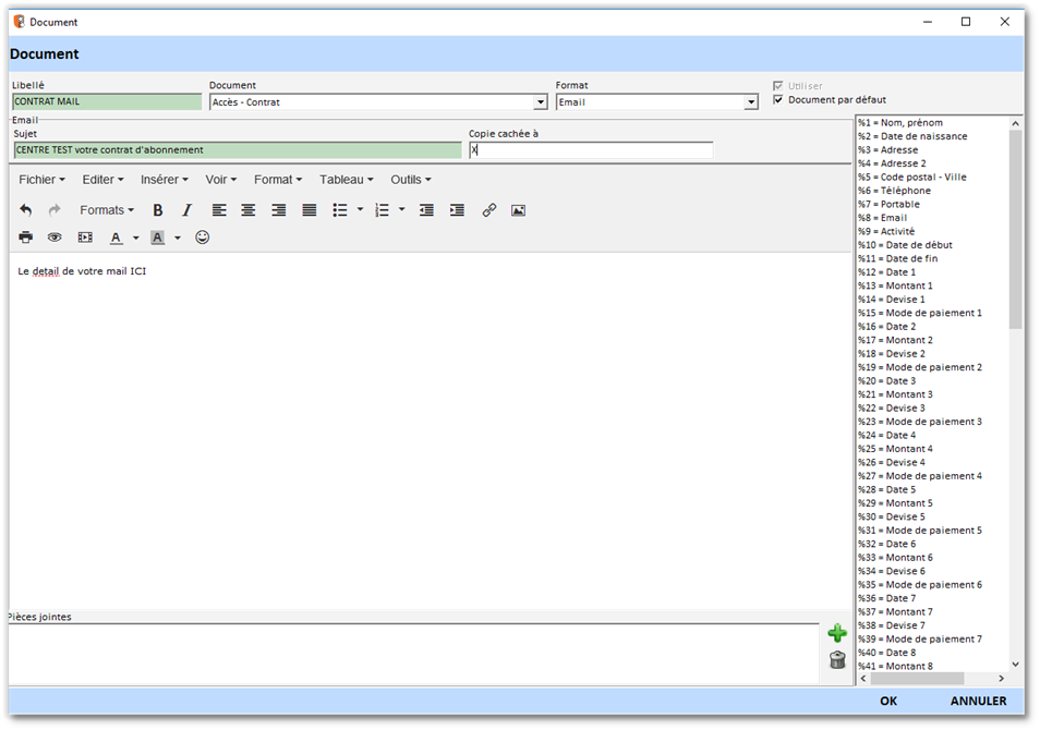 Nous allons ajouter un modèle de document pour gérer l’envoi automatique du contrat par mail.