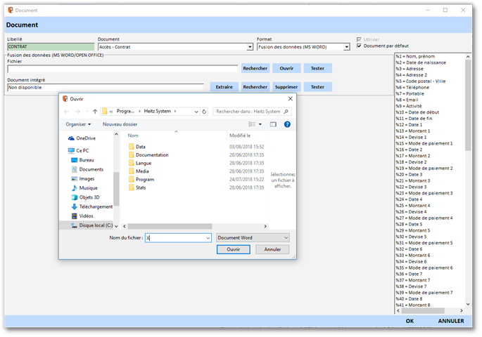- Le fichier associé pour le model de document à intégrer dans la base