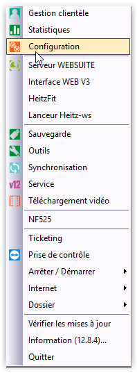 Dans la barre des taches Windows se rendre sur l’icône MenuV12 en bas à droite. Se rendre sur la ligne Configuration.