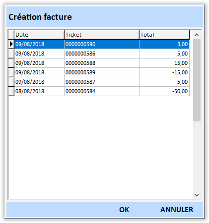 - Le logiciel vous propose un listing de factures à générer pour le client en question.