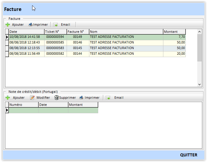 - Cliquez sur le bouton « Facture ».