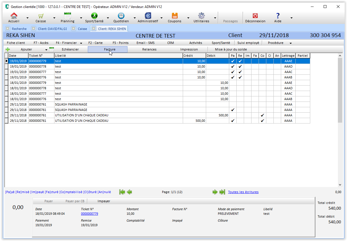 Lancez le logiciel GESTION CLIENTELE disponible dans le Menu V12