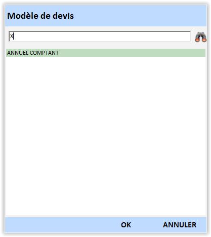 - Attention uniquement disponible si les modèles de devis ont été créés dans la configuration