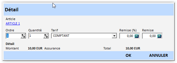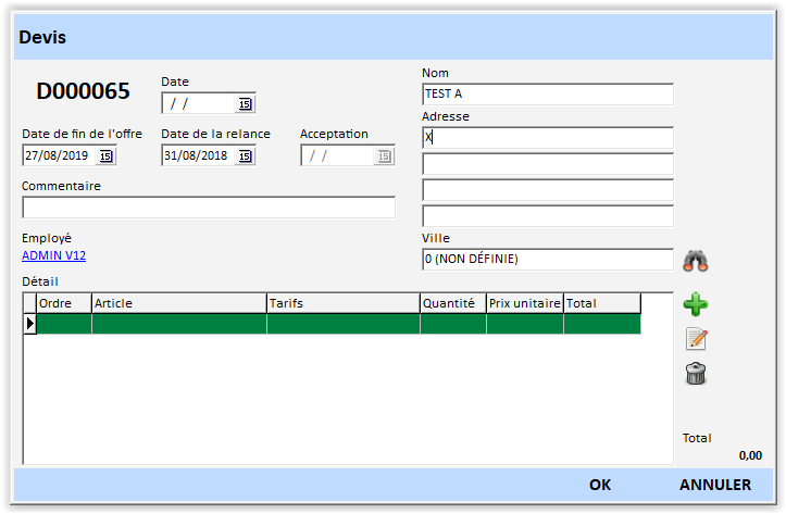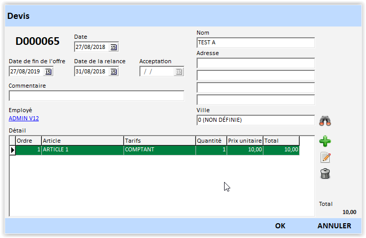 - Cliquez sur « Ok » pour valider le réglage du devis