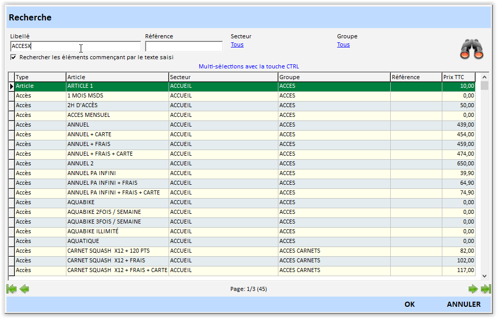 - Sélectionnez votre accès/article dans le listing.