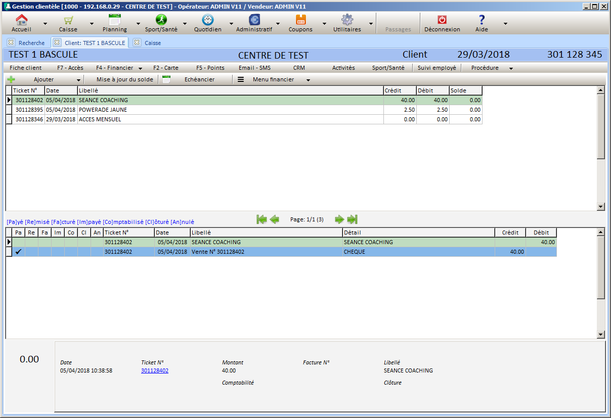 Si vous avez choisi un client dans l’onglet n°5, vous pouvez visualiser le résultat dans le financier sur la fiche du client dans la gestion clientèle.