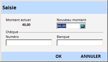 - Double cliquez sur chèque et saisissez le Nom de la banque et le Numéro du cheque.