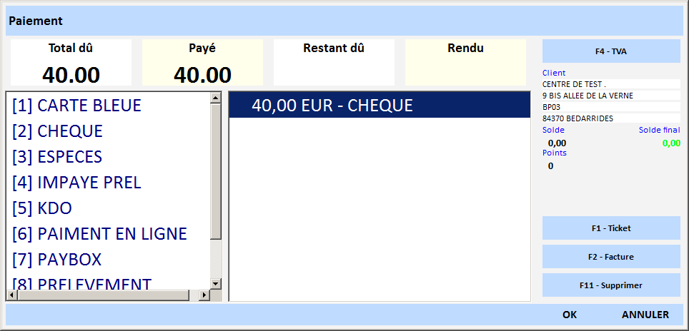 - Choisissez un mode de paiement dans la partie de droite. (dans mon exemple Chèque)