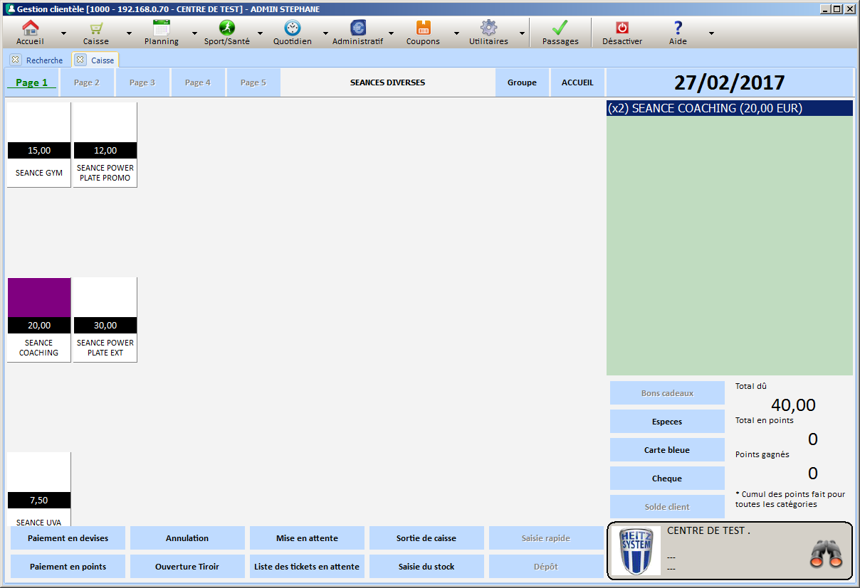 - Choisissez le Groupe dont fait partit l’article que vous voulez vendre, en cliquant sur les boutons dans mon exemple Séances Diverses.