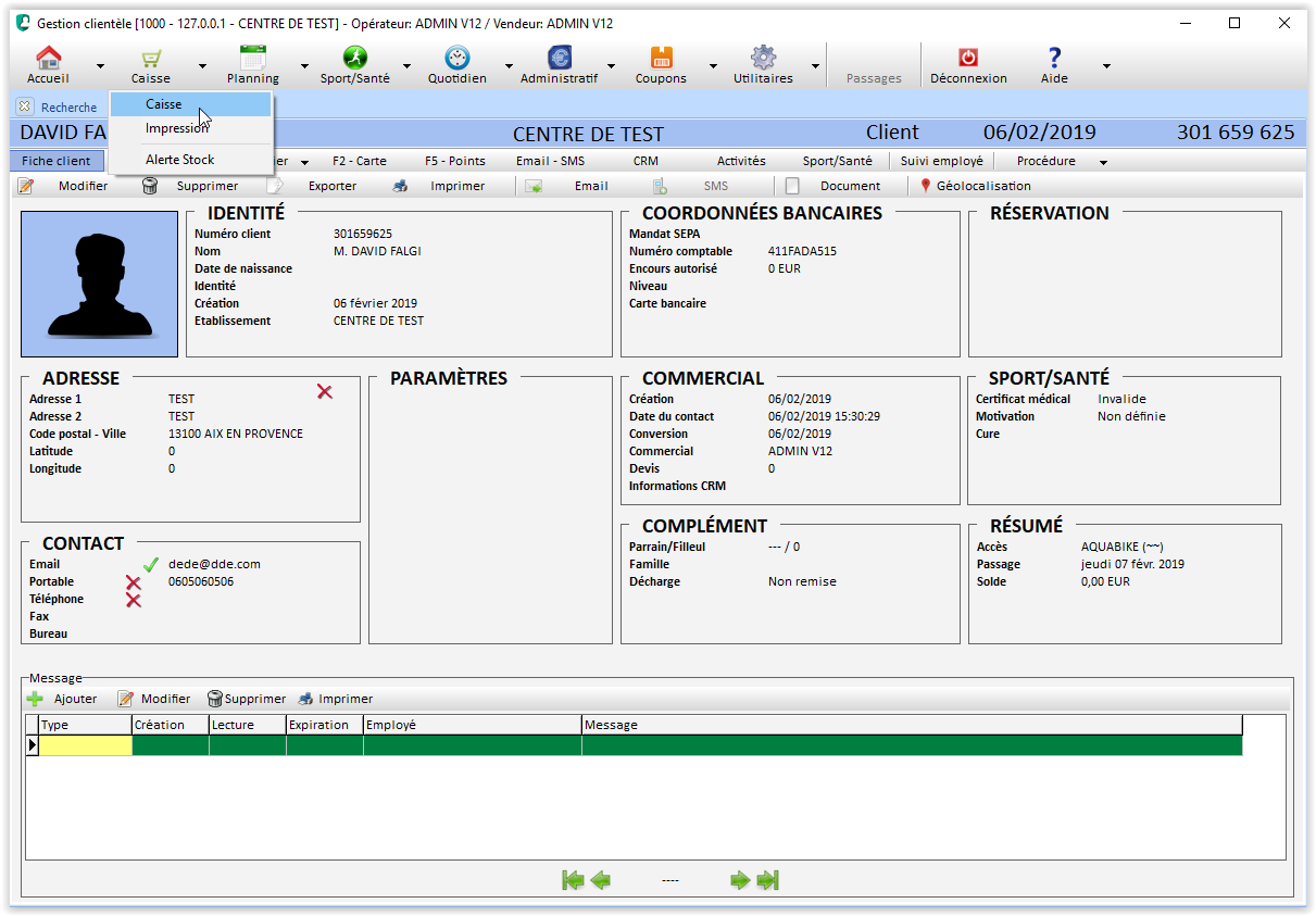 - Lancez la gestion Clientele disponible dans le Menu V12