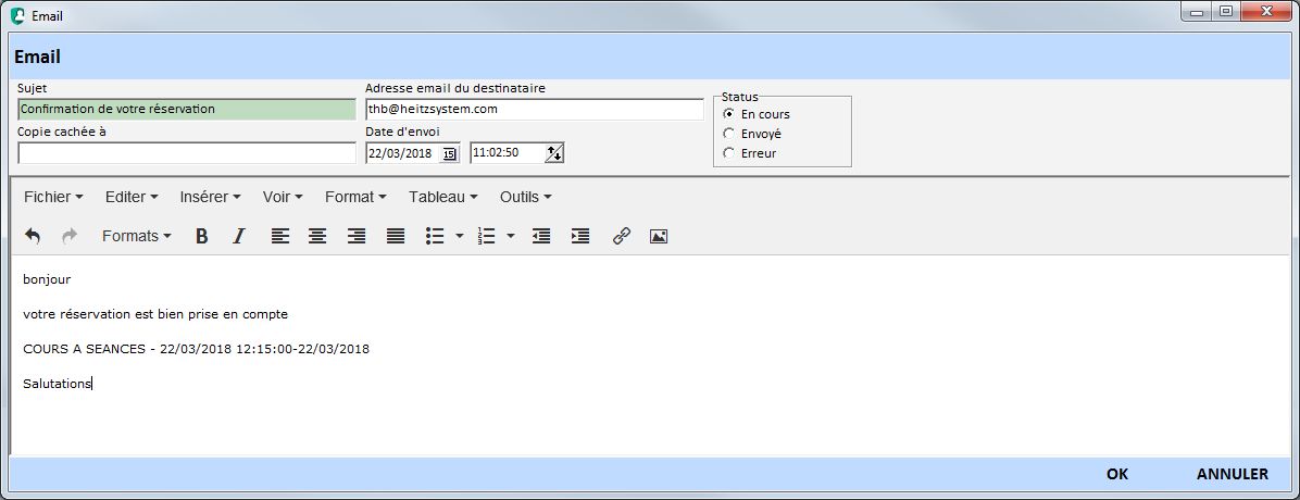ATTENTION: C’est le meme que pour le SMS. Il faut corriger!